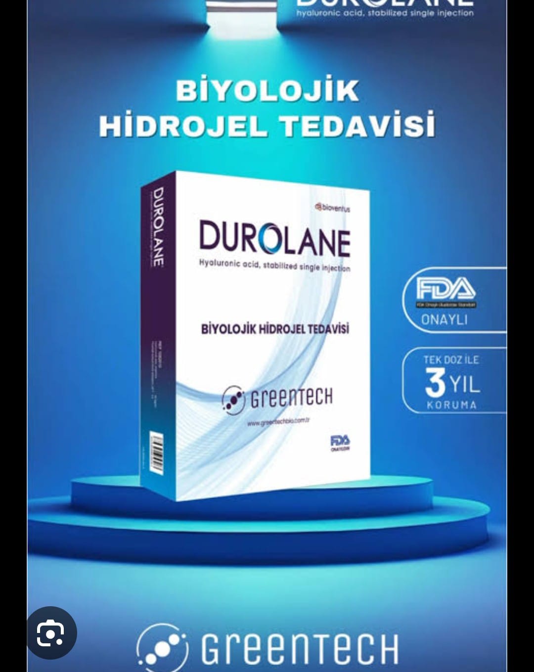 Durolane® Kendisine jel boncuklu bir yapı kazandıran  benzersiz, patentli NASHA® teknolojisiyle üretilmiştir.